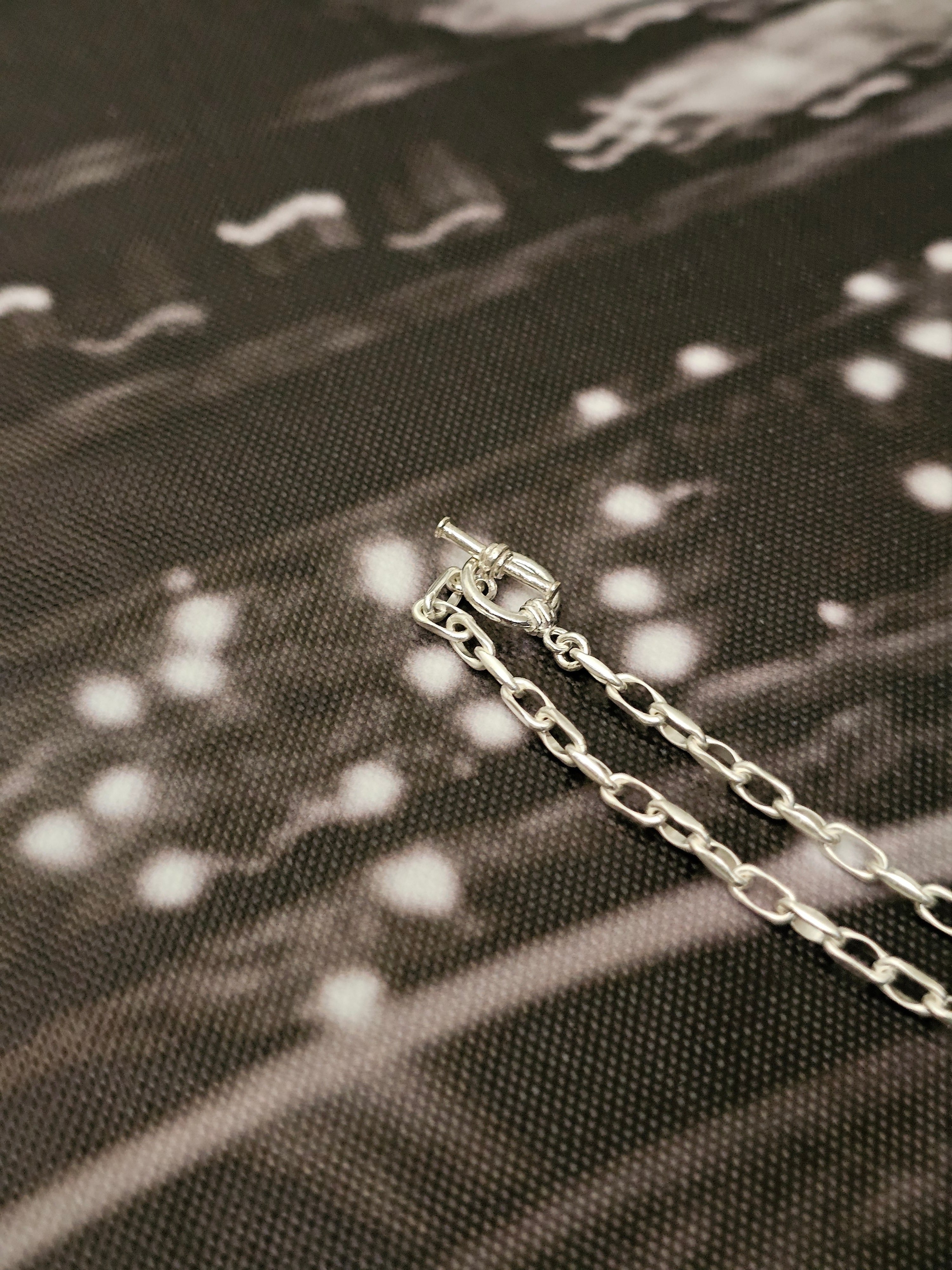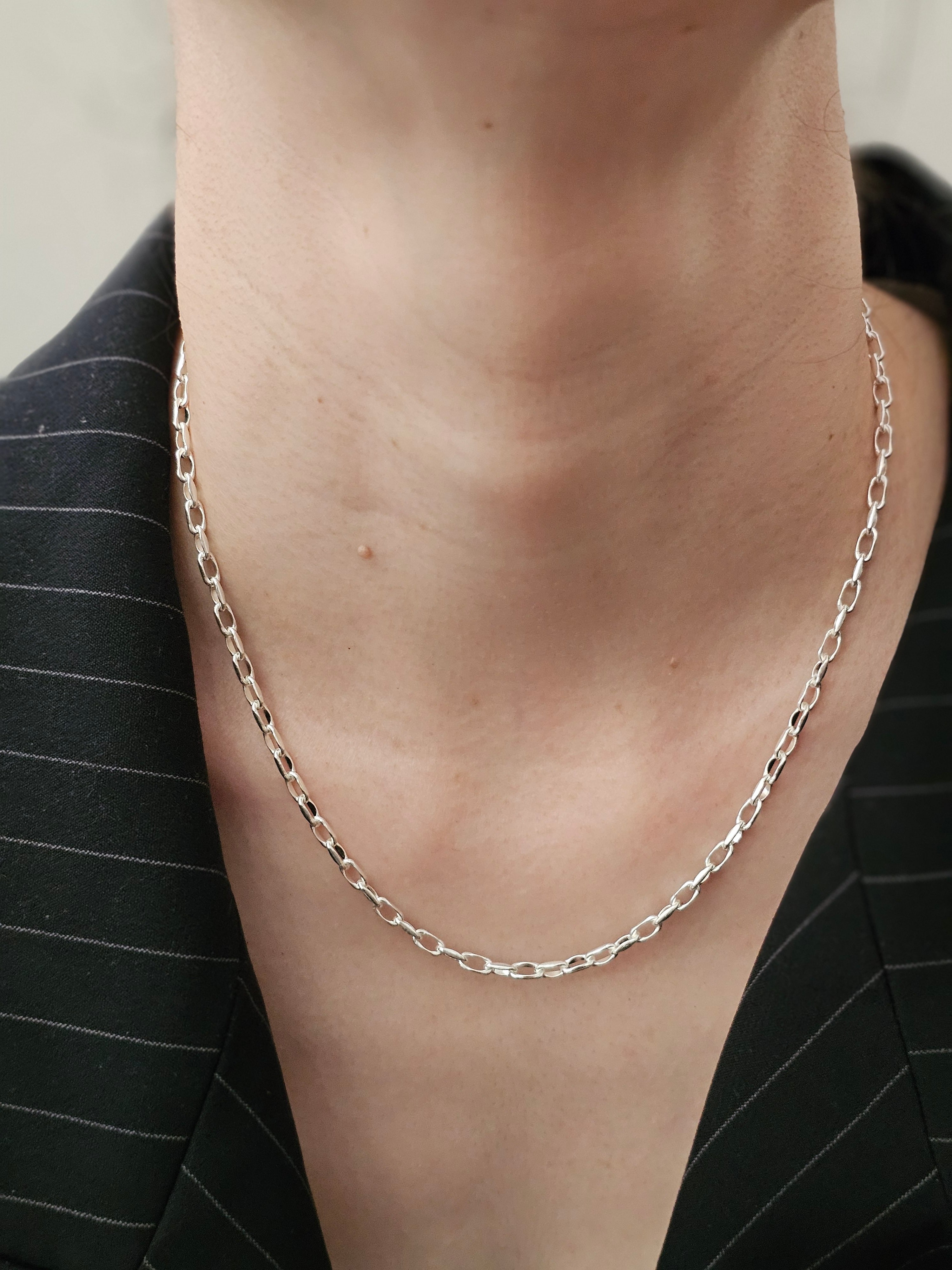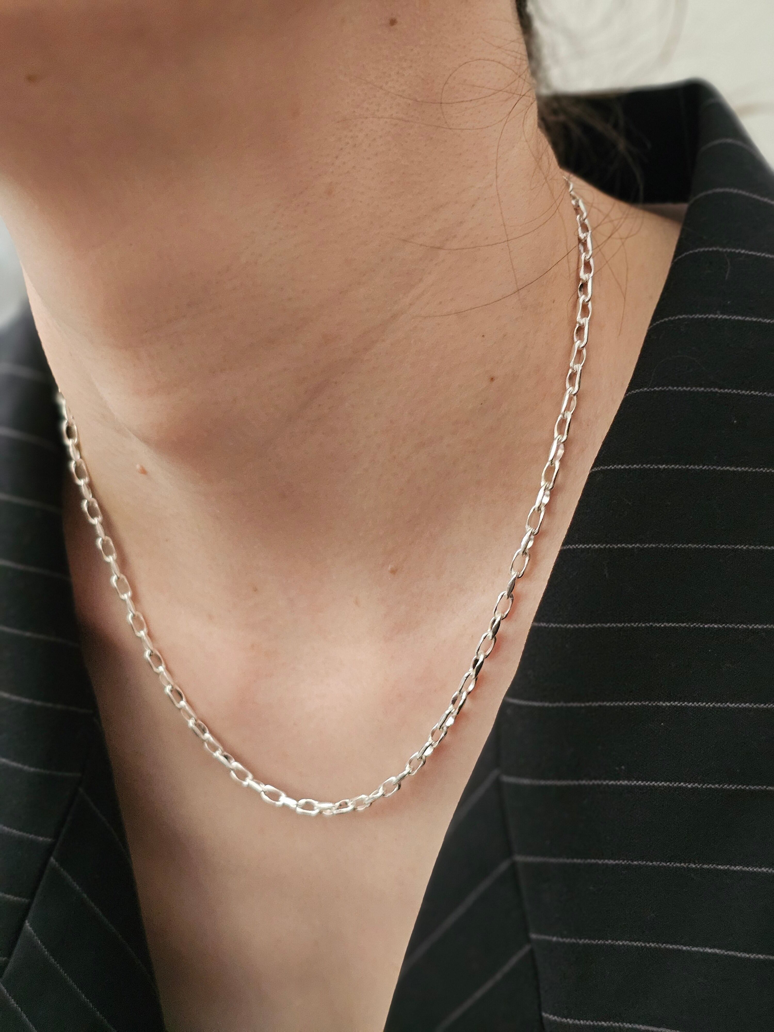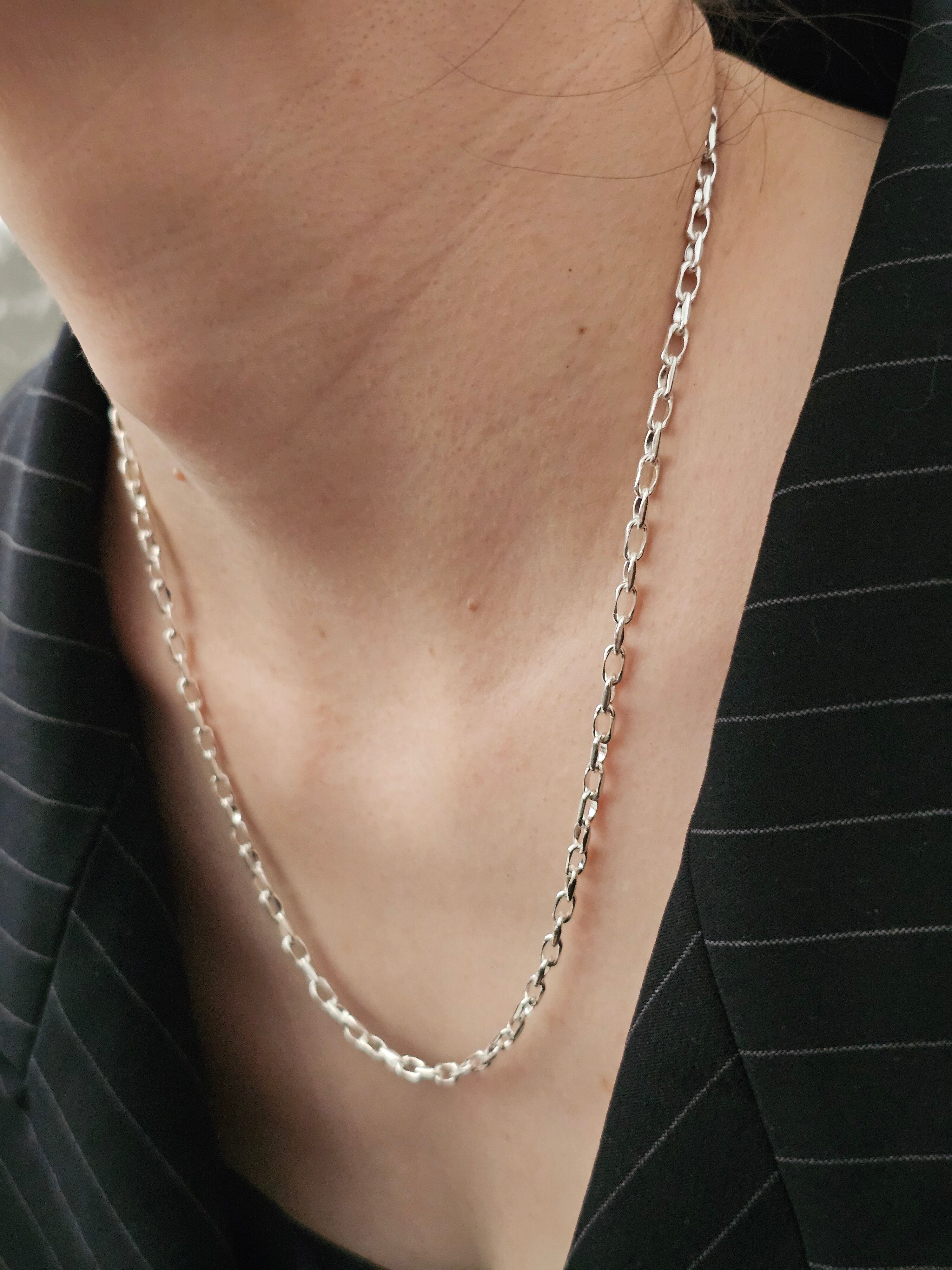 動きがあるデザインチェーンで細いながらに存在感があり、スタイリングのポイントになってくれます。