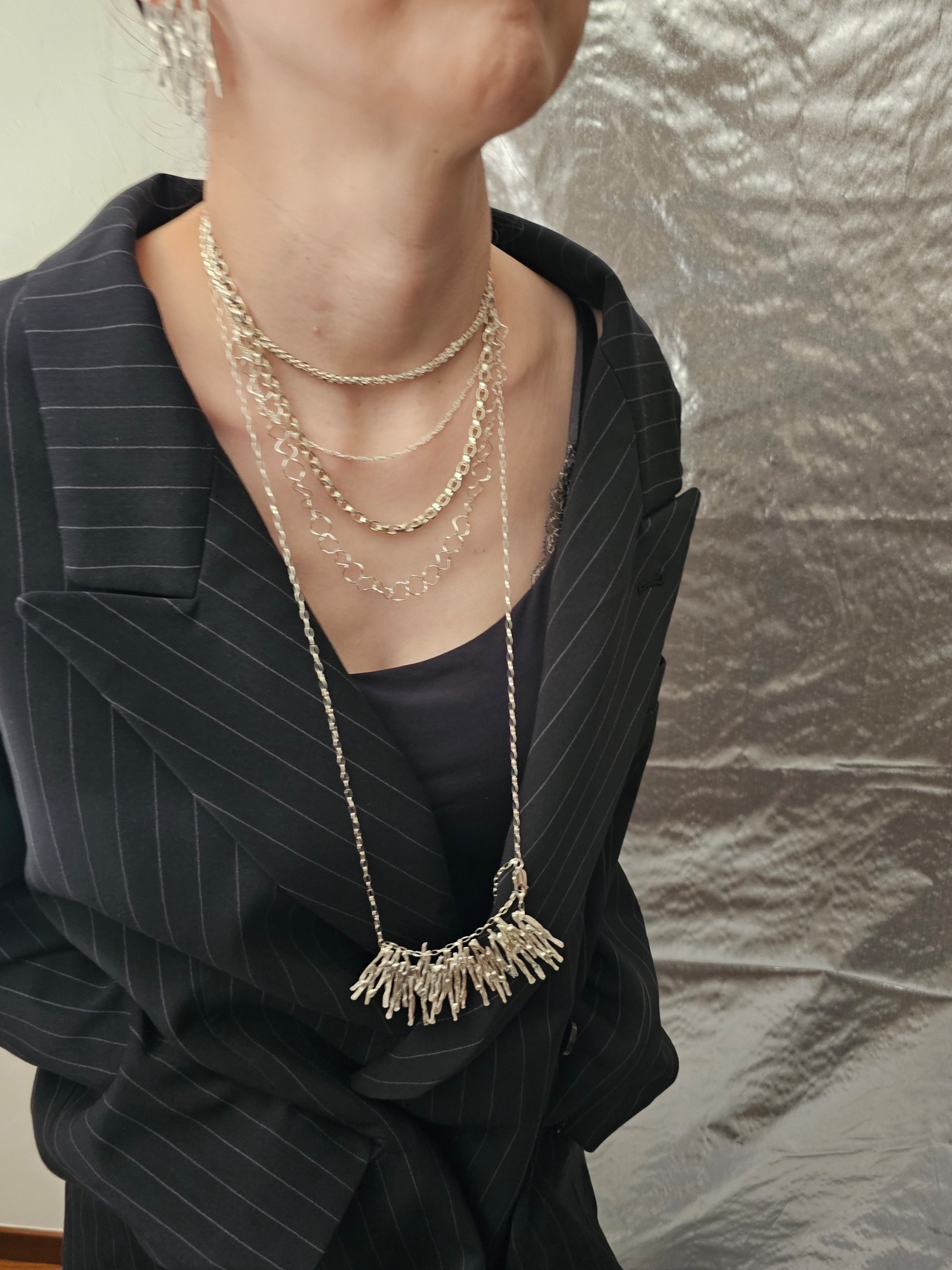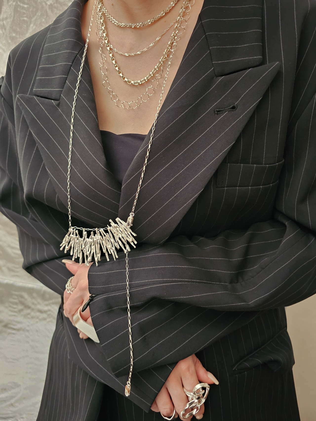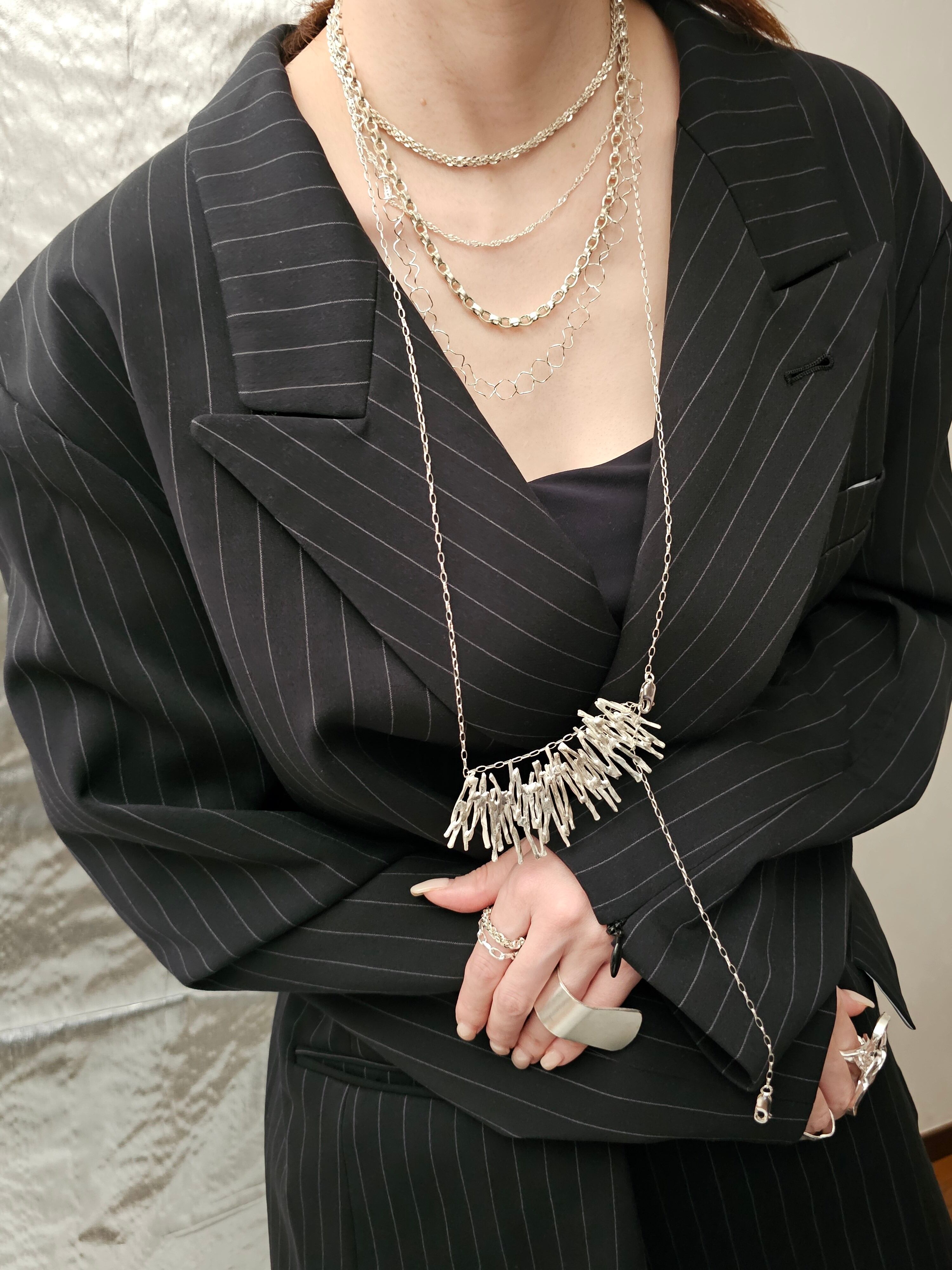 個性的なトップのロングネックレス。