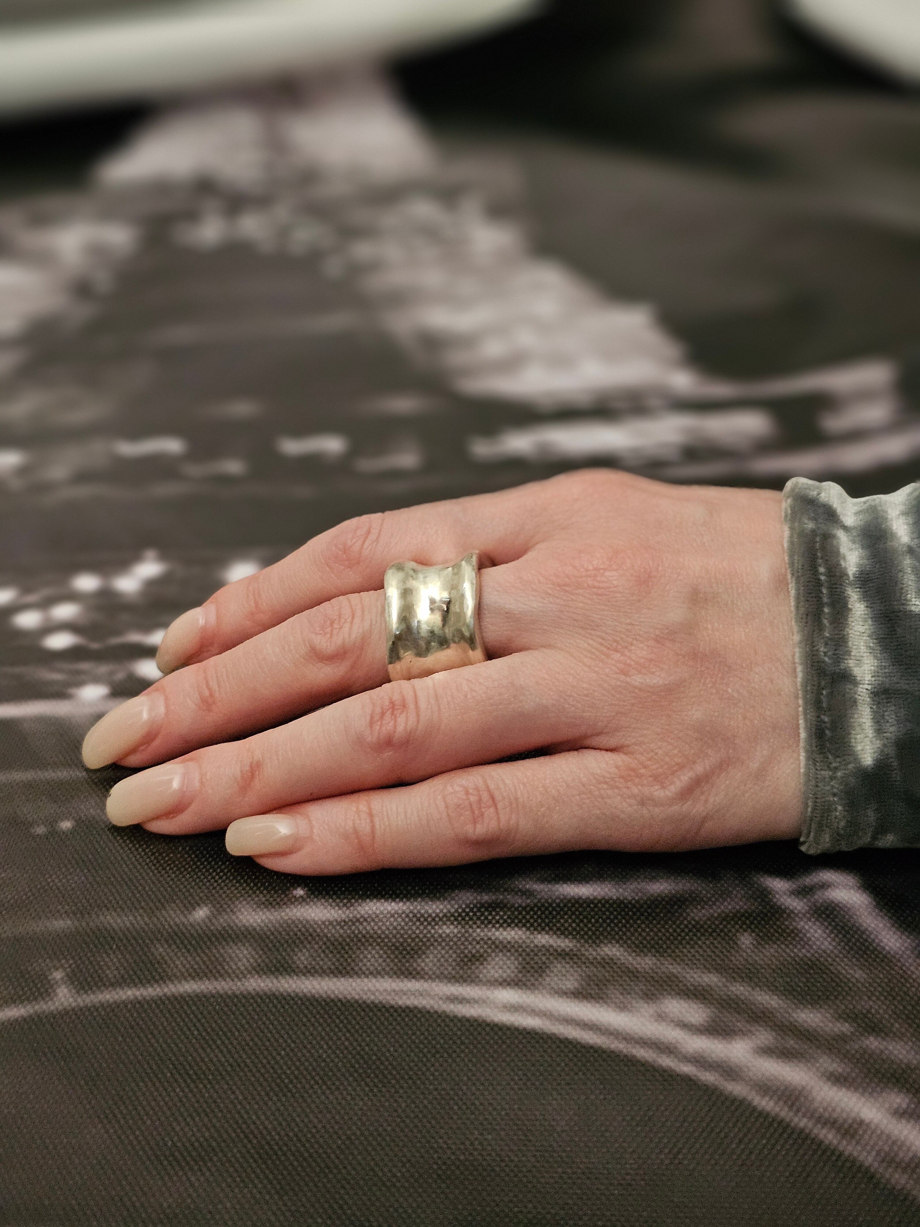 シンプルなデザインながら曲線が特長のリングです。