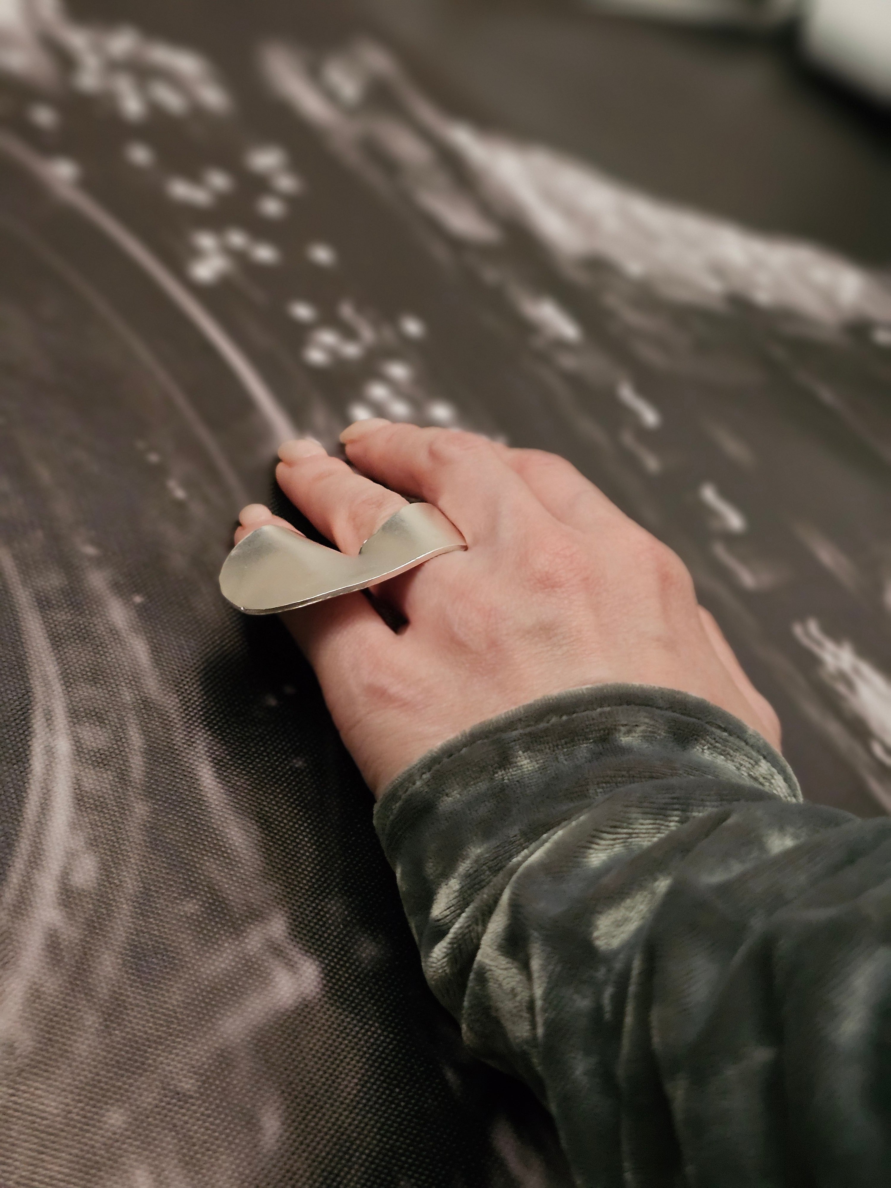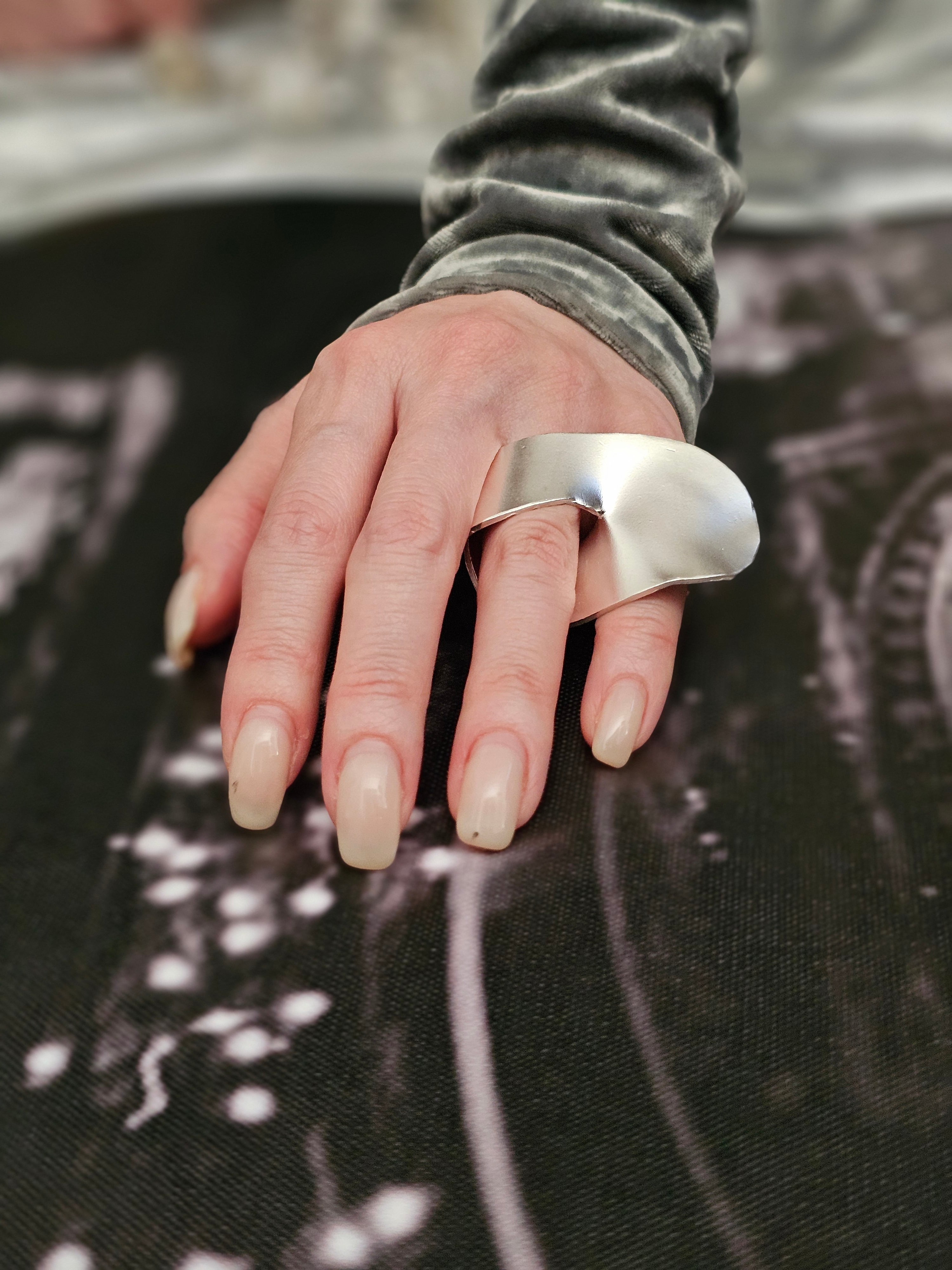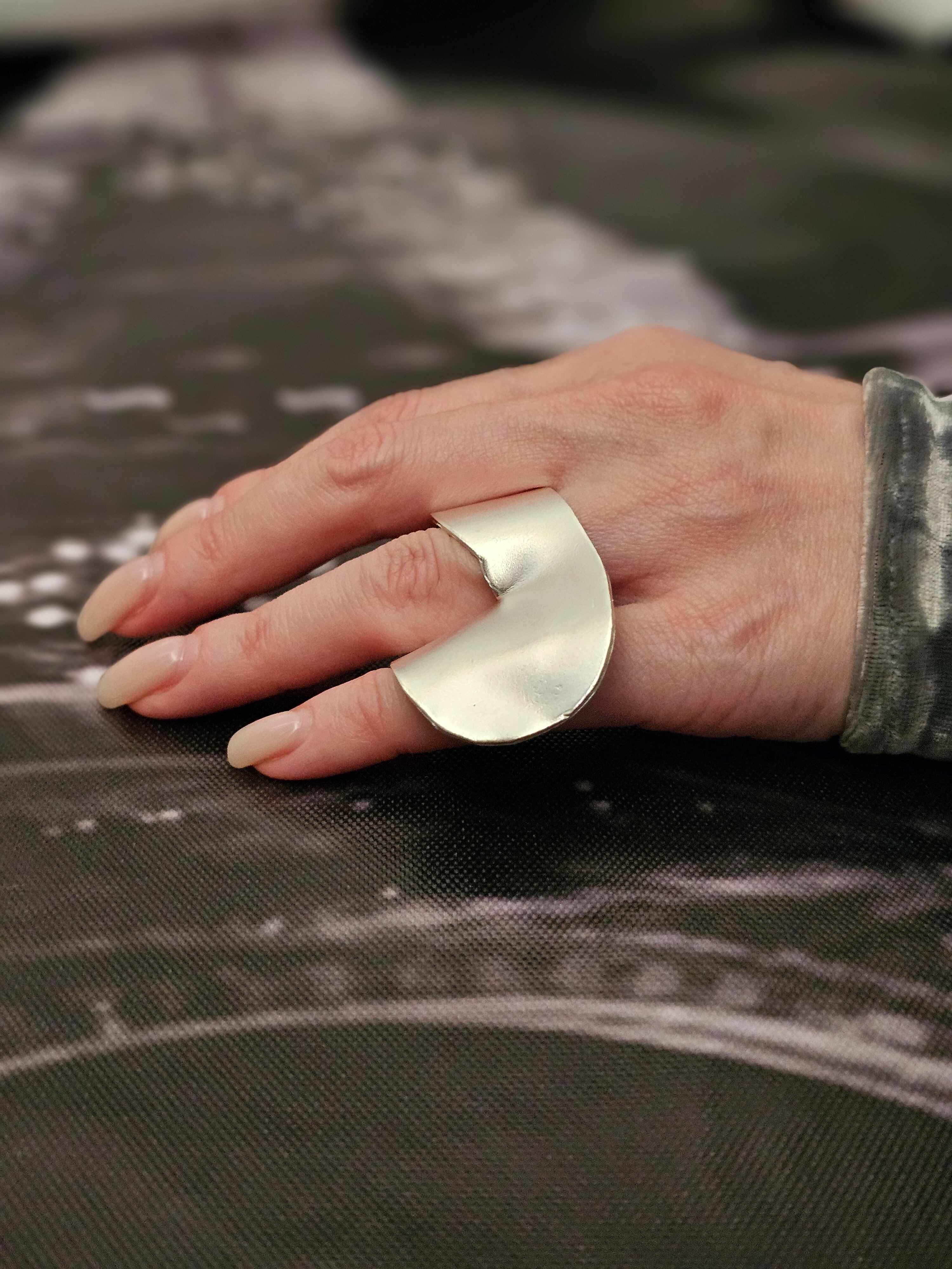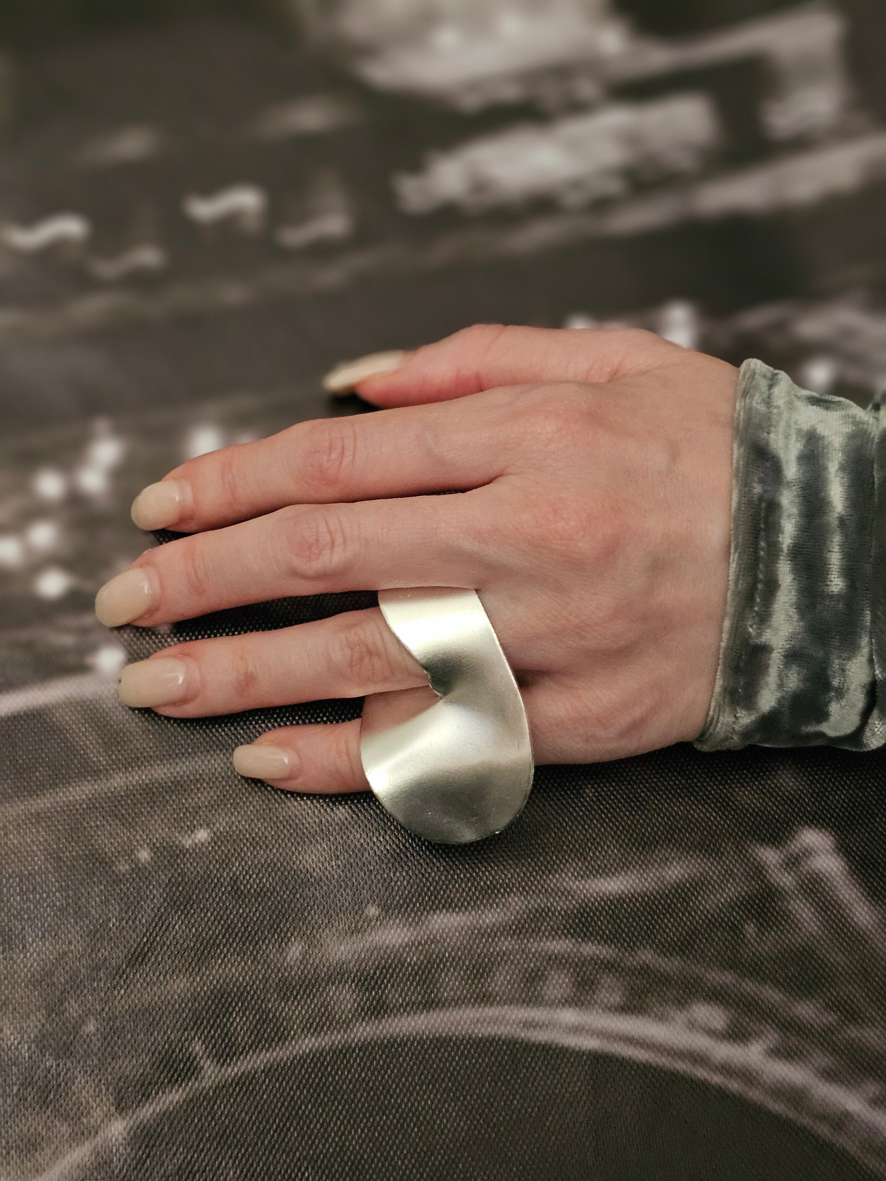 2本の指を覆うほどの大ぶりデザインリング。