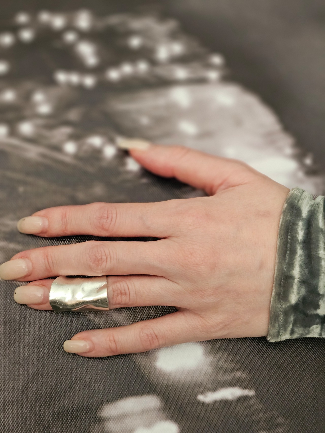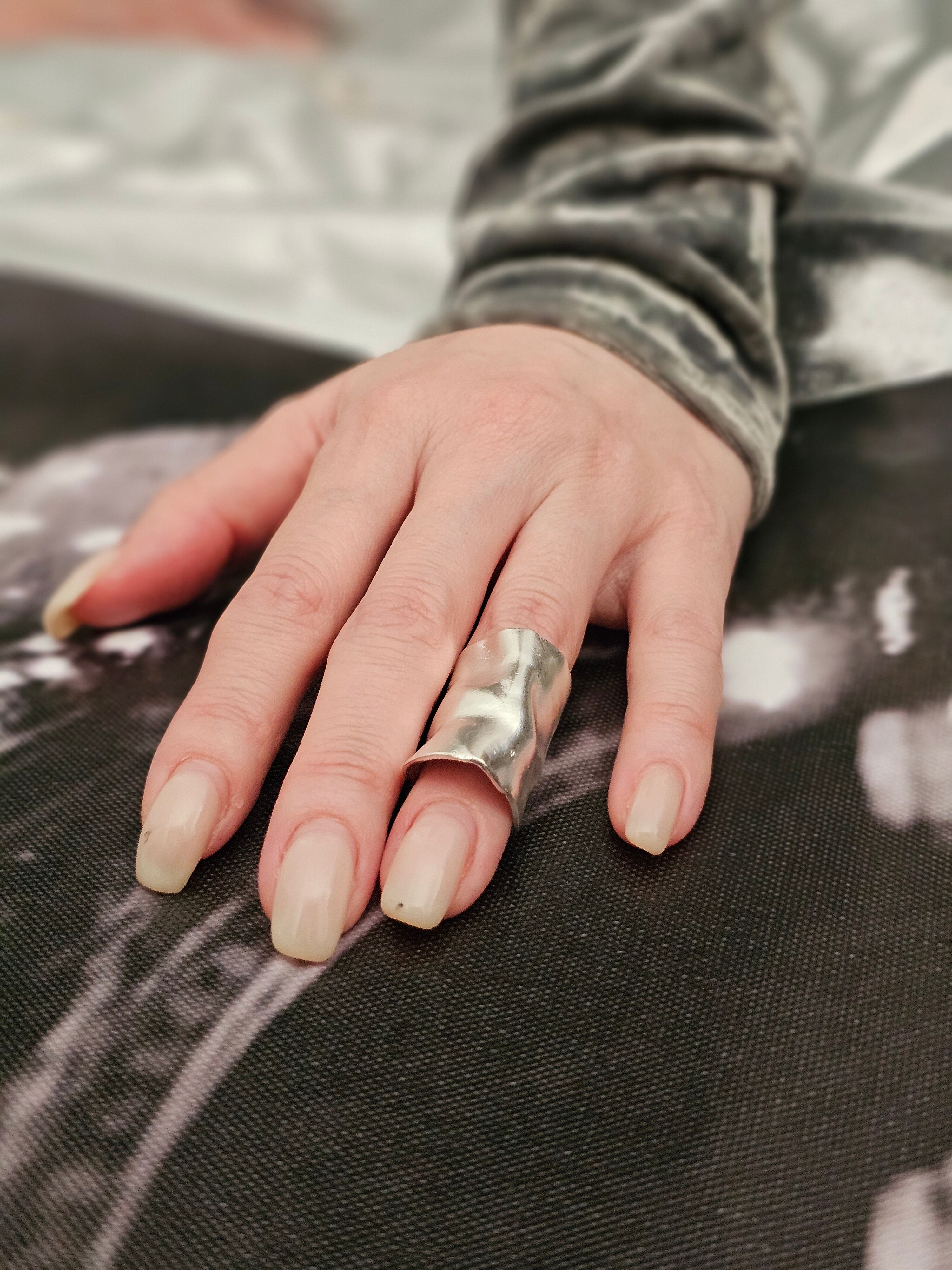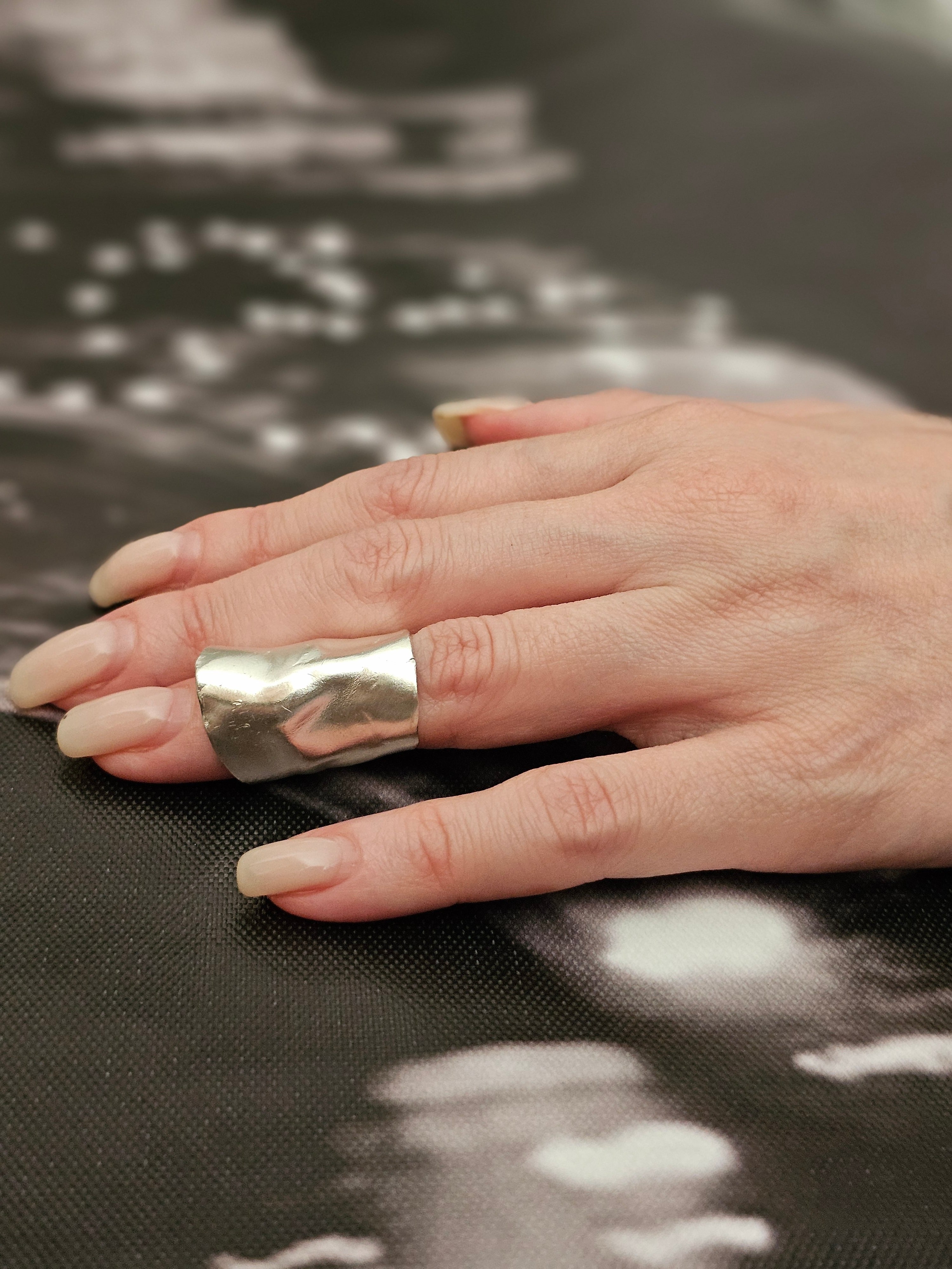 ボリューム感のあるデザインながら、表面にウエーブを出すことで柔らかさや軽さを演出しました。2wayで使用できるので沢山のスタイリングを楽しんで頂ける逸品です。